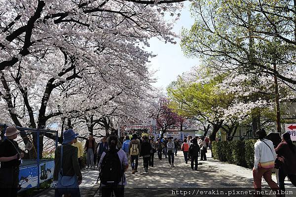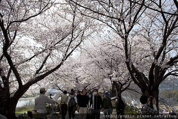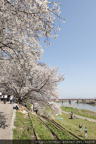 行大約10分鐘就來到對岸, 剛才的粉紅色線現在就是連續不斷的櫻花樹.